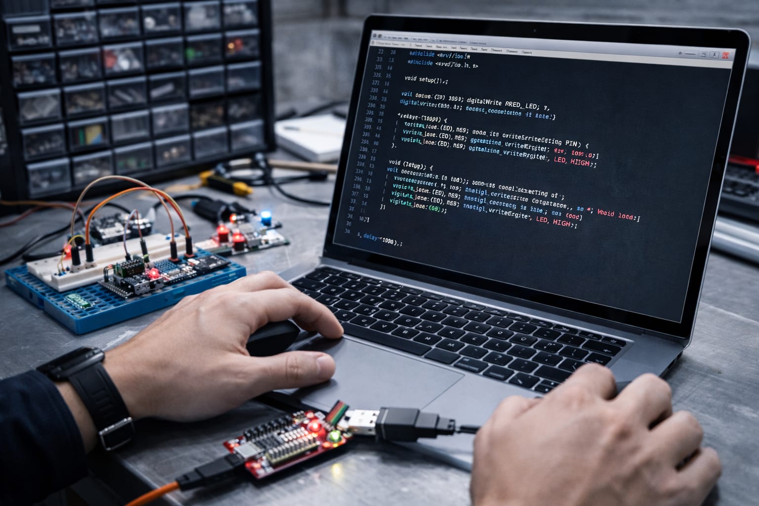 Oferujemy kompleksowe usługi w zakresie projektowania elektroniki – od koncepcji, przez prototyp, aż po gotowy produkt. Tworzymy nowoczesne i niezawodne rozwiązania dopasowane do indywidualnych potrzeb klientów z różnych branż, w tym przemysłu, IoT, automatyki oraz elektroniki użytkowej.